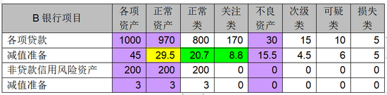 同理,B银行潜在风险估计值 = 正常类风险资产×1.5%+关注类风险资产×3%+次级类风险资产×30%+可疑类风险资产×60%+损失类风险资产×100%