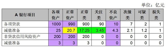 假设两家银行贷款类资产余额均为1000亿元,A银行不良贷款率为1%,按贷款拨备率2.5%计提贷款减值准备;B银行不良贷款率为3%,按拨备覆盖率150%计提贷款减值准备。两家银行非贷款类资产均为200亿元,五级分类为正常类按1.5%计提减值准备。经过多年积累,两家银行一般准备均满足1.5%的比例。我们按财政部文件要求,检验A、B两家银行拨备充足程度。