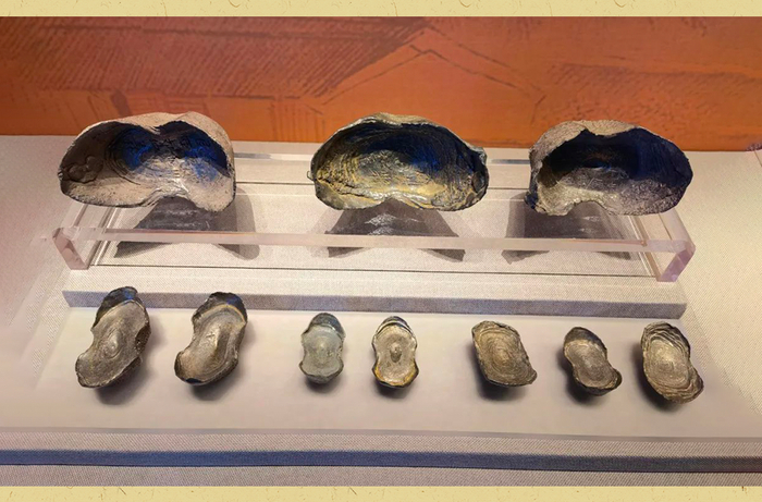 明代银锭(上三枚为五十两锭,中国钱币博物馆藏)