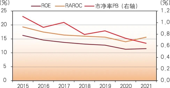 图1 2015—2021年国内大中型银行的估值与资本回报