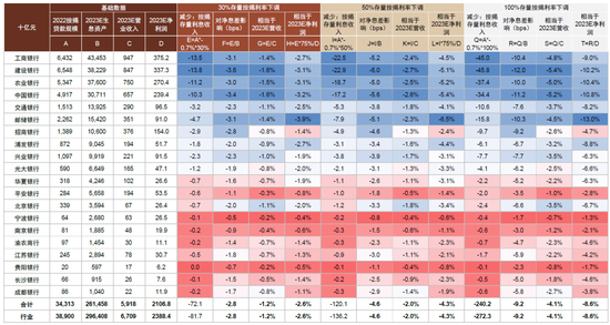 图表:我们估算假设30%/50%/100%存量按揭利率下降70bp,对2023年净息差影响分别为-3bp/-5bp/-9bp