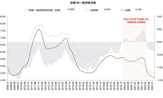 图表:2020年3月-2022年4月新发放按揭和一般贷款利率出现倒挂