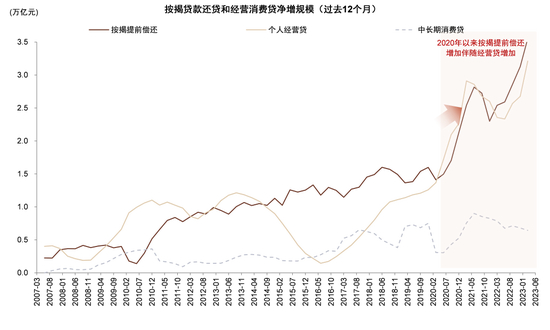图表:2020年以来按揭还贷增加伴随经营贷增量上升,可能与居民按揭置换经营贷有关