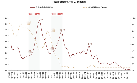 图表:日本在上世纪80和90年代也出现过居民按揭提前偿还率上升