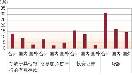 加大海外资产投放力度。受超宽松货币政策影响,日本银行业二十余年来始终处于低利率、低增长环境,息差空间被逐步侵蚀,银行在日本本土的盈利能力受到明显冲击。全球金融危机爆发后,欧美银行业遭到重创,被动收缩海外业务,以三菱日联和三井住友为代表的日本都市银行敏锐抓住发展机遇,开启国际化业务扩张,海外资产占比迅速提高。一是加大海外贷款投放力度。近年来,日本主要银行不断加大海外贷款投放力度,日本主要银行海外贷款占比已经由2010年的不到15%提升至2023年的30%以上,三菱日联银行④2022财年国外贷款占比甚至高达45.2%(其2022年主要资产科目占比及主要资产收益率见图6、图7)。二是加大海外债券配置力度。随着日本国债收益率不断下降,日本银行业不断加大对海外高息债券的配置比例,日本都市银行外国证券配置占比由2001年的10%左右提升至2023年末的27.47%。三是积极开展海外业务布局。日本银行业还不断强化新兴市场布局,以收购、新设海外网点等方式开展国际化扩张。2013年,三菱日联银行收购泰国第五大银行大城银行70%的股份,并于2015年推动其与曼谷分行合并;2017年收购菲律宾第七大银行安全银行20%的股份,并于2019年将股份增加至94.1%。海外资产的增加给日本银行业业绩改善贡献了重要力量,自2022年3月美联储开启加息周期以来,日本银行海外信贷资产的存贷利差持续改善,日本海外业务的盈利能力进一步提高。