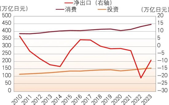 图2 2010—2023年日本的投资、消费和净出口金额