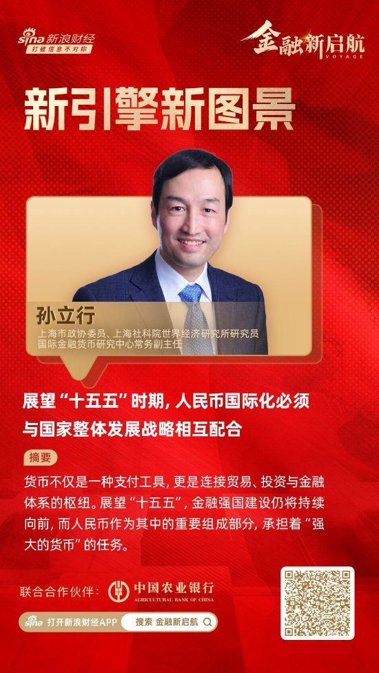 在此背景下,新浪财经推出《金融新启航·新引擎新图景》专题系列,邀请金融业界专家和学者,围绕“十五五”新周期下的金融变革展开前瞻性研讨。本期《金融新启航·新引擎新图景》对话上海市政协委员、上海社科院世界经济研究所研究员、国际金融货币研究中心常务副主任孙立行。他指出,展望“十五五”时期,人民币国际化必须与国家整体发展战略相互配合、协同推进。在这一阶段,金融强国建设仍将持续向前,而人民币作为其中的重要组成部分,承担着“强大的货币”的任务。