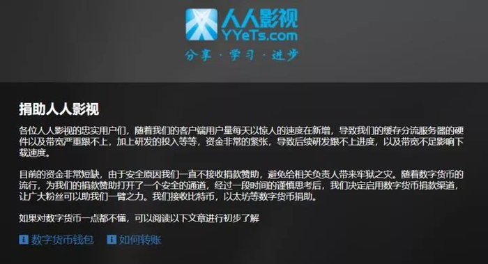 人人影视开启数字加密货币捐赠一个月后 进展如何?