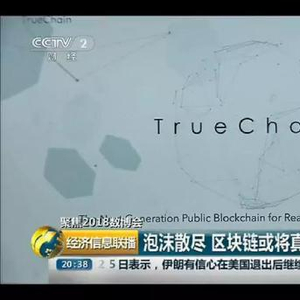 Bianews 5月27日消息,昨日,在央视财经频道经济信息联播《聚焦2018数博会》专题,主题为“泡沫散尽,区块链或将真正迎来高速发展期”的节目中,初链(TrueChain)英文名出现在醒目位置。