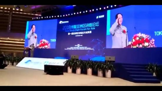 这是5月28日上午,博鳌亚洲区块链论坛召开。令人惊讶的是,往常三四级城市甚至乡镇级别的庆典活动上热衷的模仿秀,出现在海南博鳌亚洲论坛主会场,就在海南省琼海市博鳌亚洲论坛大酒店,这个曾承载过博鳌论坛光芒的地方。