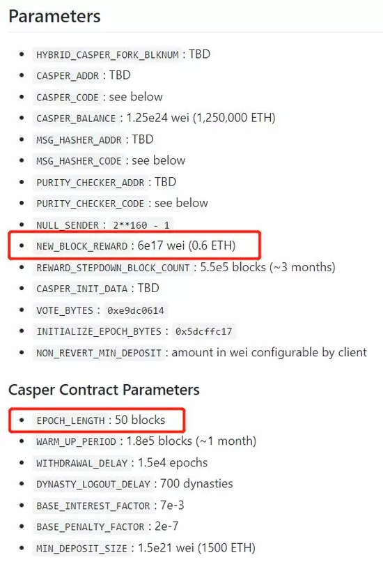 而根据EIP 1011 Hybrid Casper FFG草案中的初步设定,切换至PoW+PoS混合机制之后:以50个区块为周期,验证者将会对周期内最后一个区块进行投票押注,即使用PoS机制产生区块;而其余在PoW机制下产生的区块,奖励将以每3个月减少0.6 ETH/块的速度,在一年时间内从当前3 ETH/块的挖矿奖励逐渐减少至0.6 ETH/块。