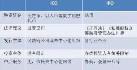 ICO和IPO之间本质的区别是,IPO有监管,而ICO可以帮助那些不能发售股票的企业,绕开IPO,绕开监管,让发展更为初期的公司有了一个更加灵活的融资手段。