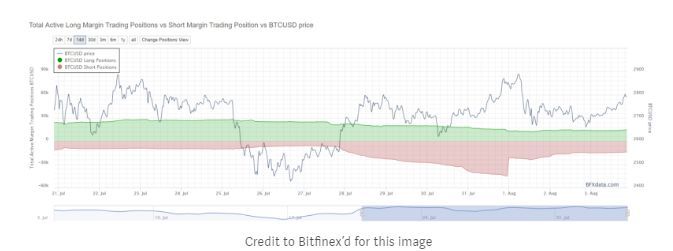 在 7 月 27 日,Bitfinex 平台上多头多过空头,分布系数为 1.091。然而就在 8 月 1 日,分布系数变为了 0.7757。