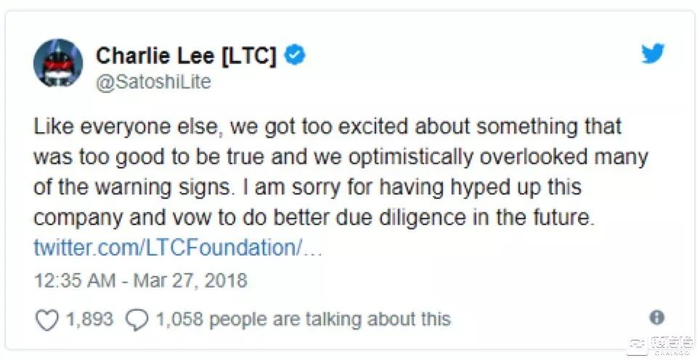Charlie不得不在推特上道歉:“和大家一样,我们对好到不可思议的事情过于激动,过分乐观地忽略某些警惕。我对大肆宣传这家公司感到抱歉,并发誓以后会进行更好的尽职调查。”