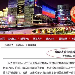 通报显示,原告冯先生在OKCoin币行网上购买比特币,在进行比特币现金提取时发现领取失败,经协调未果后,冯先生将OKCoin币行的运营公司北京乐酷达网络科技有限公司(以下简称“乐酷达公司”)诉至法院。