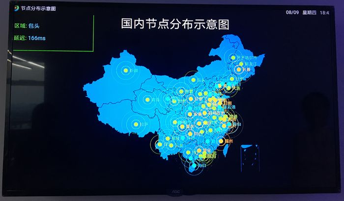 监控屏幕上实时显示全国节点分布情况