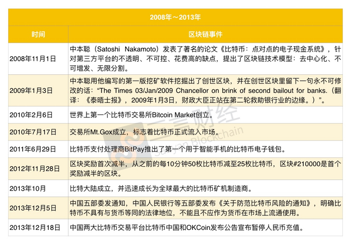 2008年-2013年:区块链技术登上世界舞台2008年11月1日,中本聪(Satoshi Nakamoto)发表了著名的论文《比特币:点对点的电子现金系统》。他在文中这样写道:“我一直致力于建立一个新的电子现金系统,完全点对点,无需‘可信第三方’。”