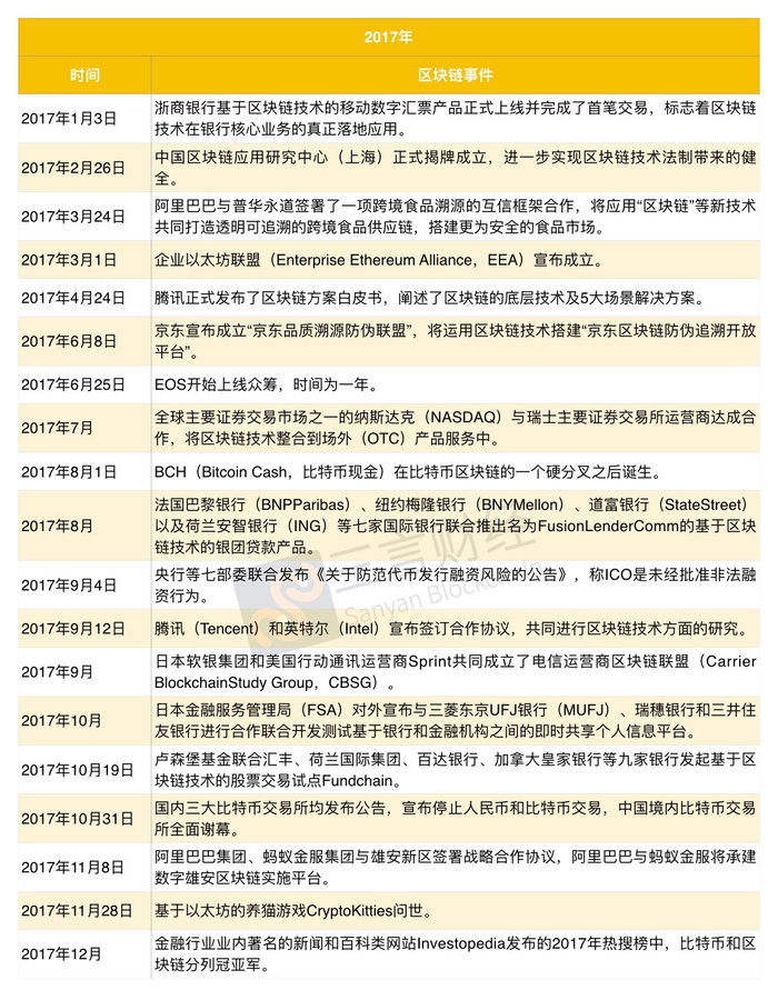 发展至2017年,比特币的用户基础一直在稳定上升,以太坊智能合约生态系逐渐完善,包括交易隐私、资产管理工具、数字身份、分布式计算、预测市场、与分布式存储等应用,都在今年蓬勃发展这一年,对标以太坊的区块链底层平台EOS诞生,开启了区块链3.0时代。
