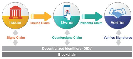 在区块链世界里,去中心化身份协议主要依赖于三个重要标准的组合:去中心化标识符(DIDs)、可验证声明和所有人都可以使用的分类账。