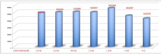 图6:(比特币近七日链上交易数,数据来源:bitinfocharts.com)
