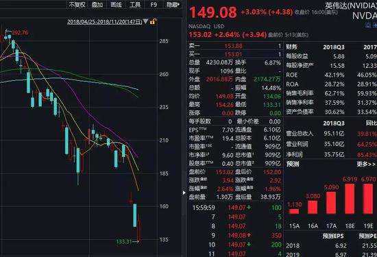 在过去的一个多月,作为美股市场上最耀眼的人工智能概念股——英伟达(NVDA),股价连续下跌,从2018年10月1日的最高292.76美金,下跌到最低2018年11月20日的最低133.31美金,股价回撤幅度超50%。