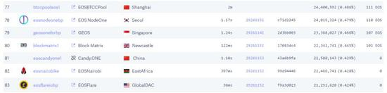 最让人可气的是,低于 100EOS 无法领取节点奖励的规定,这让中小型节点根本没有任何成本回收的可能。以第 83 名的 EOSflare 节点为例,它开发的 EOS 区块链浏览器是目前整个社区较受欢迎的浏览器之一,然而这个团队却根本拿不到任何 EOS 的奖励。