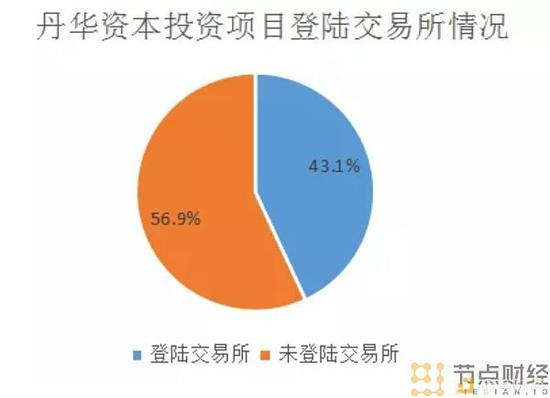 ▲在丹华资本投资的这65个区块链项目中,已在交易所上市的项目有28个,占比43.1%。