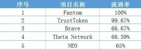 丹华所投项目中流通率排名前五的项目如下表:
