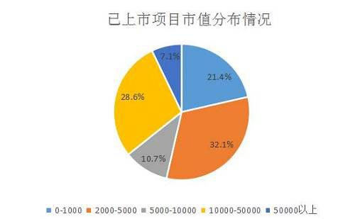 这28个上所项目中,市值覆盖的区间范围为161BTC-18,4171BTC,平均市值为16136.9BTC,这些项目市值的分布图如下,其中2000-5,000BTC区间的项目最多。