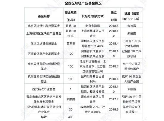 今年4月,杭州区块链产业园启动,成立了规模为100亿元的雄岸全球区块链创新基金;深圳不甘落后,也启动了首个区块链创投基金,市国资委旗下的两家机构资本担任基金管理人;今年7月,南京也出现了百亿级别的“公链共同体创新投资基金”。