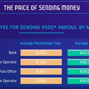 而如果你是通过银行处理汇款,手续费平均可高达 10.41%。如果资金的最终目的地十分偏远(例如非洲),可能会有额外的 15%的处理手续费。很难想像在这个信息已经如此发达的年代里,居然还有这么高的手续费。