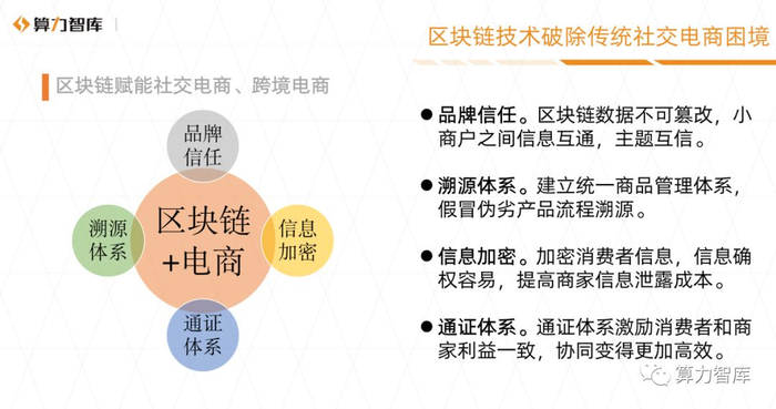 算力智库专家团认为,传统电商巨头企业天然具有品牌优势,但是应用区块链技术改造现有平台的驱动力不够大。反倒是在跨境电商、社交电商等领域,区块链的去中心化信任能得到更大限度的发挥。