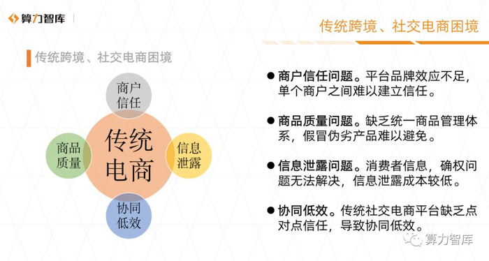 传统社交电商、跨境电商:商户信任无法传递、协同组织方式低效无序