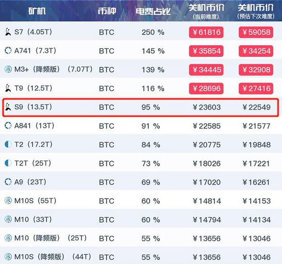 良辰的说法并不是危言耸听,根据鱼池最新“关机币价”,在电费0.4元/KWh时,目前的挖矿难度下,S9挖矿的电费占比已经达到95%,关机风险巨大。