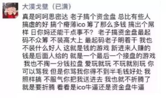 在朋友圈里,大漠丝毫不掩饰自己的项目是资金盘,更是煞有其事地为自己的项目正名,态度极其嚣张。
