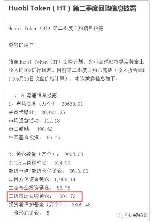 依次类推,二季度火币回购1001.73万个HT,7月1日-7月15日之间,HT价格约为2.24USDT,可以计算出回购共付出2243.876万USDT,依次可以推算出二季度火币全部收入约为11219.380万USDT,也就是11219.380万美元。