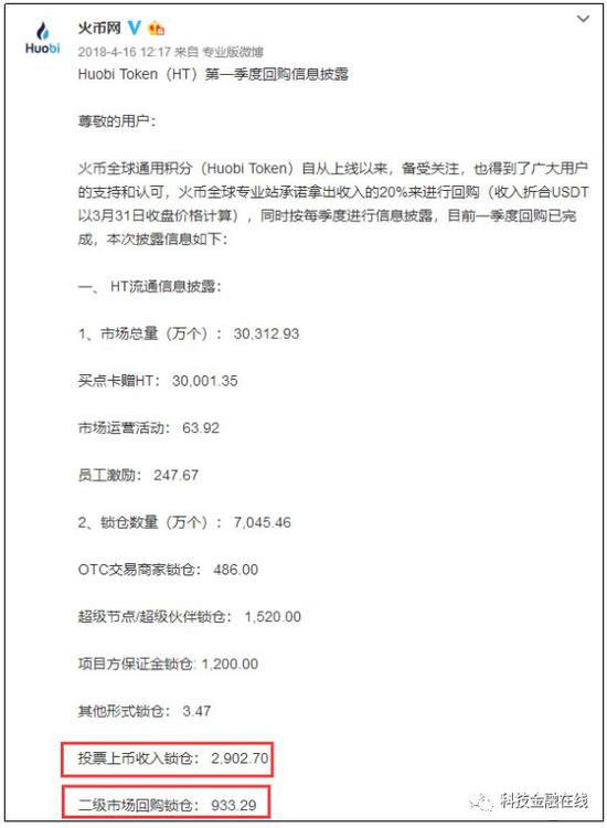 根据公告显示,一季度上币收入2902.7万HT,由于此部分收入计入了火币投资者保护基金锁仓,所以其价值应该按照2018年12月31日的HT收盘价(1.07USDT)计算,价值为3105.899万USDT,也就是约为3105.899万美元。