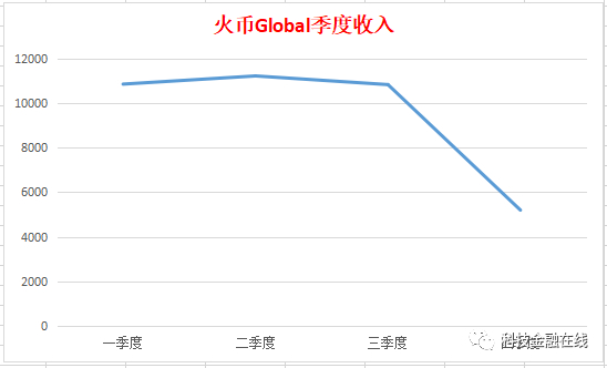 从下面图表可以看出,2018年火币Global收入断崖式下滑,四季度币三季度下降52%。
