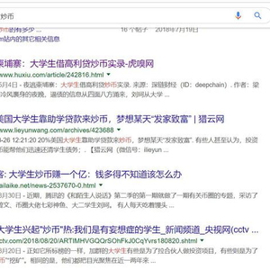 搜索引擎中输入“大学生”“炒币”关键词结果