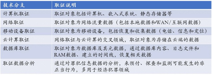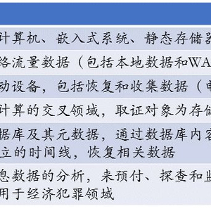 据长江证券分析师马先文介绍,目前电子数据取证设备主要用于协助司法、警务及政务等部门进行数据取证,一方面是针对以网络为载体的犯罪过程进行取证;另外一方面是针对实施犯罪个体的电子设备进行取证。伴随着互联网技术与电子设备终端的不断发展,电子信息/数据存储和交流的方式逐渐多样化(包括计算机、移动设备、数据库及云储存等)。取证对象的边界扩张也带动取证技术的不断发展,针对不同的下游数据存储方法/路径,已形成包括计算机取证、网络取证、移动设备取证、云计算取证、数据库取证和取证数据分析的六大技术体系。