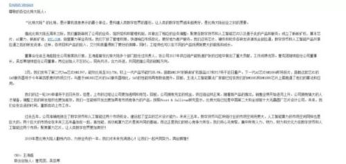 此外,内部信还证实了此前传言比特大陆人事变动的消息:王海超正式出任公司首席执行官,此前公司“双CEO”的局面终结。两位联合创始人双双卸任,詹克团担任董事长,吴忌寒则担任公司董事。