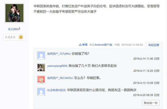 互链脉搏发现,百度贴吧中有不少受害者曝光,华联国美利用区块链、虚拟货币概念大肆圈钱,目前有部分受害者称已经被骗了几十万元。