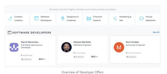 CanWork为有自由职业者招募需求的人和企业提供了一个平台,而且只收取1%的费用。在该平台,个人和企业都可以发布工作机会,而且可以提供公开报价、或是邀请式报价。邀请式意味着企业或个人只接受一些被邀请的自由职业者来竞标某项工作。这种模式给自由职业者创造了一种更加公平的平台,因为竞争变少之后,报酬价格也会趋于正常。