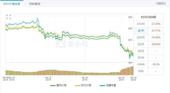 随着各大交易所、钱包纷纷下架BSV,该币价格开始暴跌,非小号数据显示BSV 24小时跌幅已达到21.25%。
