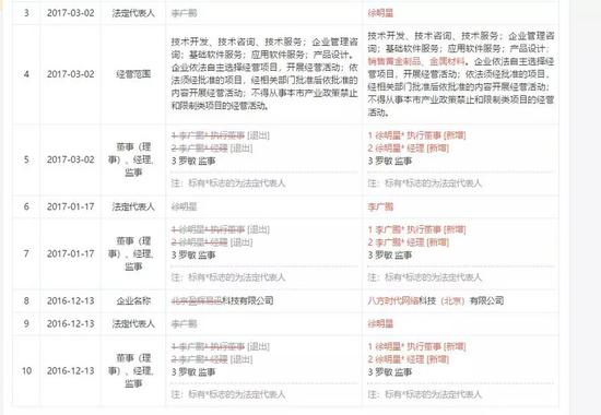 在欧凯联创全资投资、李广鹏曾任职的八方时代网络科技(北京)有限公司,曾经发生过类似的职权变动。
