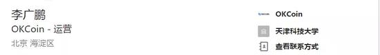 李广鹏在网上的公开资料极少,在领英的个人展示页面,仅显示OKCoin-运营。