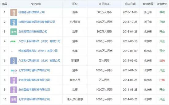 据公开资料显示,李广鹏名下所有的存续状态的公司,算上欧凯联创共有九家,在其中两家任法人代表和执行董事,五家任监事,剩下为董事和执行董事。
