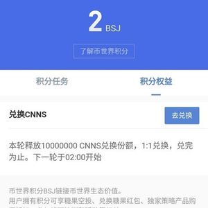 币世界积分与CNNS 1:1兑换