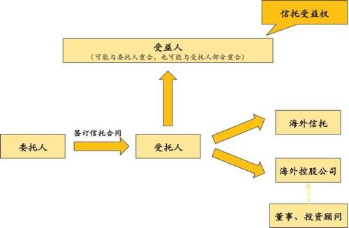 海外信托的交易结构和中国本土信托并无太大差异,也是受托人按照委托人意愿运营信托财产。但是由于信托机构本身是信托关系的当事人,海外信托受托人多会回避,把信托财产直接装进一个专门为该信托成立的公司中,通过独立的公司运营信托财产,控股公司由委托人本人或其指定人选担任公司投资顾问。如果为了避税等特殊目的,还会设立离岸公司。国内有些事物管理类信托也会采用这样的运营模式。