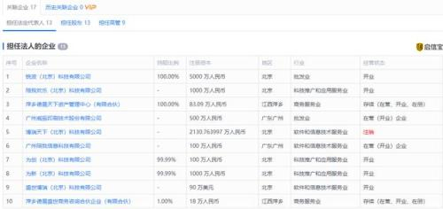 担任13家公司法定代表人